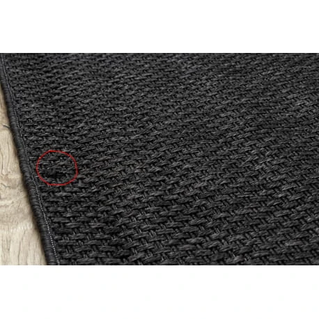 Sznurkowy dywan w głębokiej czerni, odporny na warunki atmosferyczne, idealny na taras i balkon.