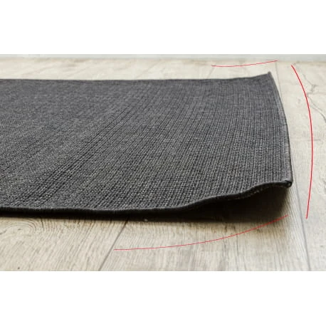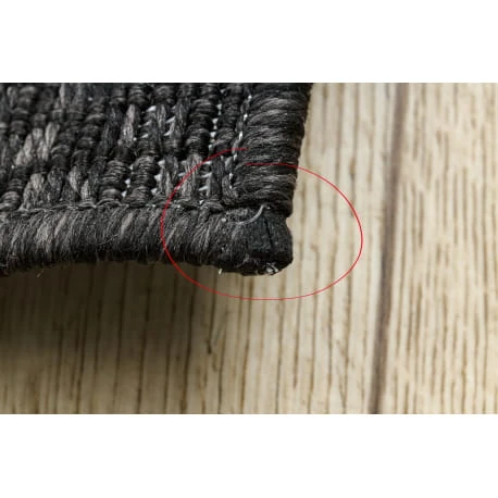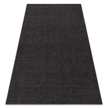 Sznurkowy dywan w głębokiej czerni, odporny na warunki atmosferyczne, idealny na taras i balkon.