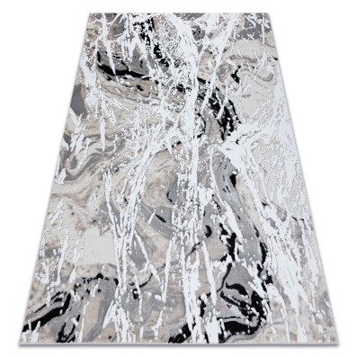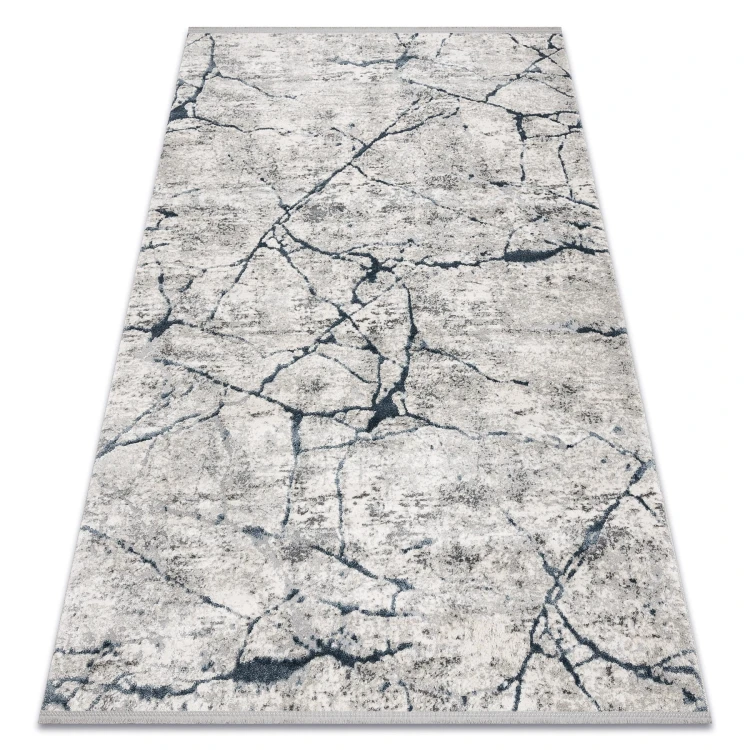 Szary dywan z abstrakcyjnym wzorem, który doskonale sprawdzi się w salonie lub pokoju, nadając wnętrzu nowoczesny charakter.