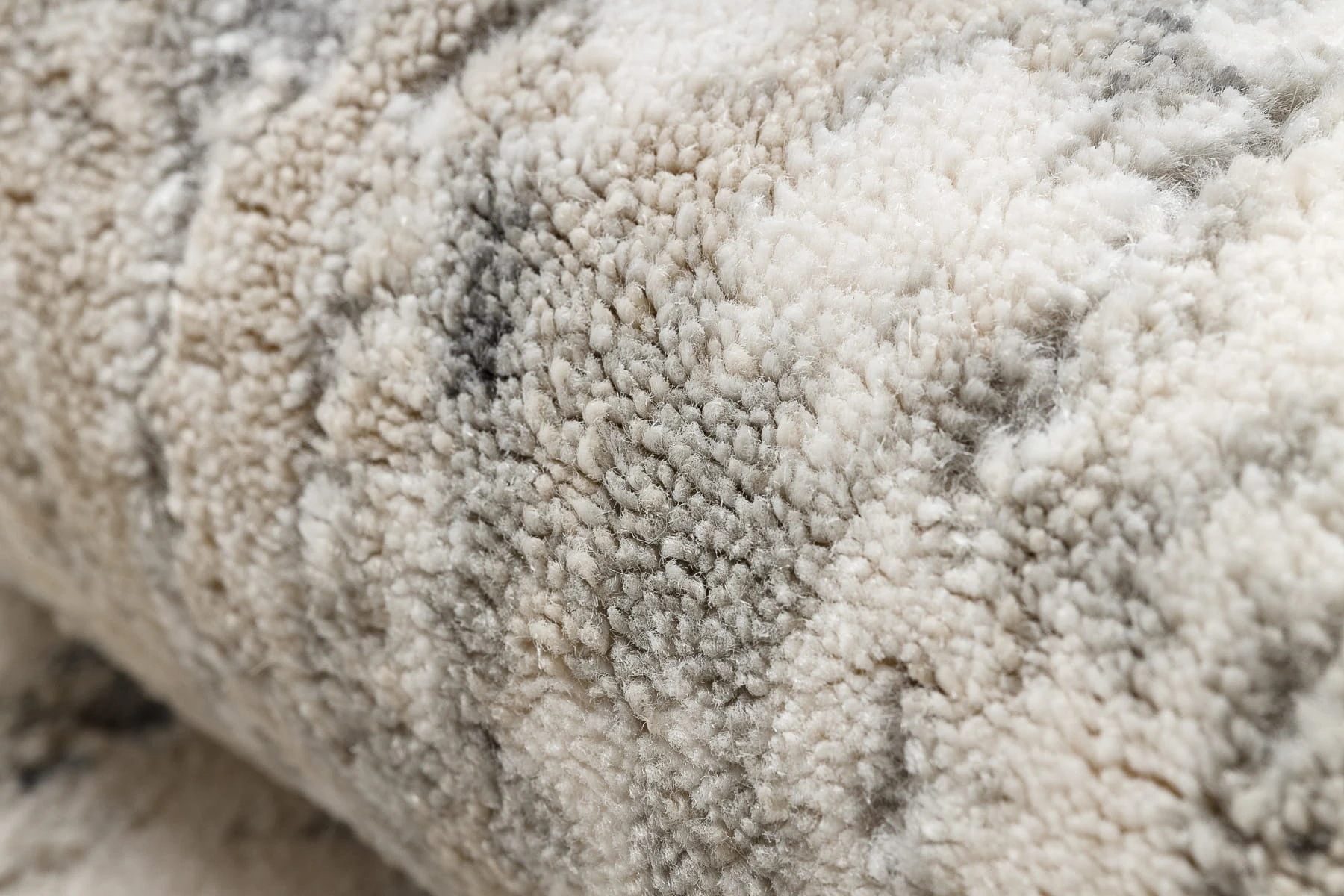 Szaro-kremowy dywan z abstrakcyjnym wzorem, który doskonale wpisze się w nowoczesny salon lub pokój.