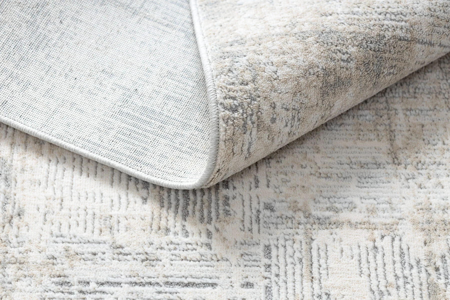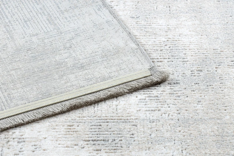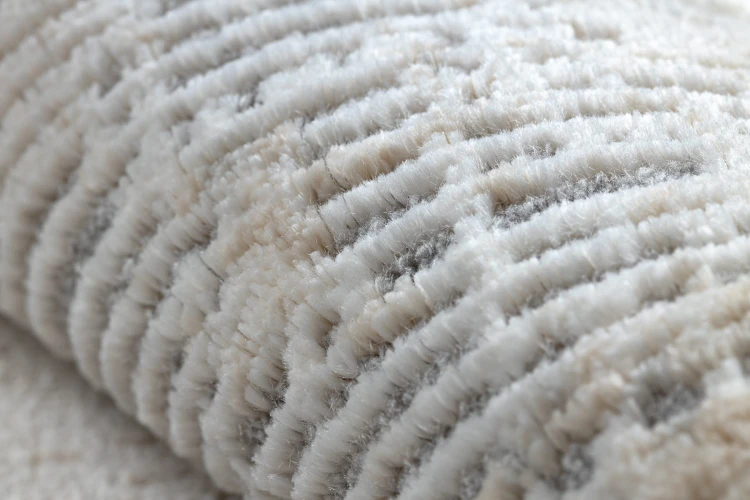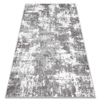 Szaro-kremowy dywan z abstrakcyjnym wzorem, który doskonale wpisze się w nowoczesny salon lub pokój.