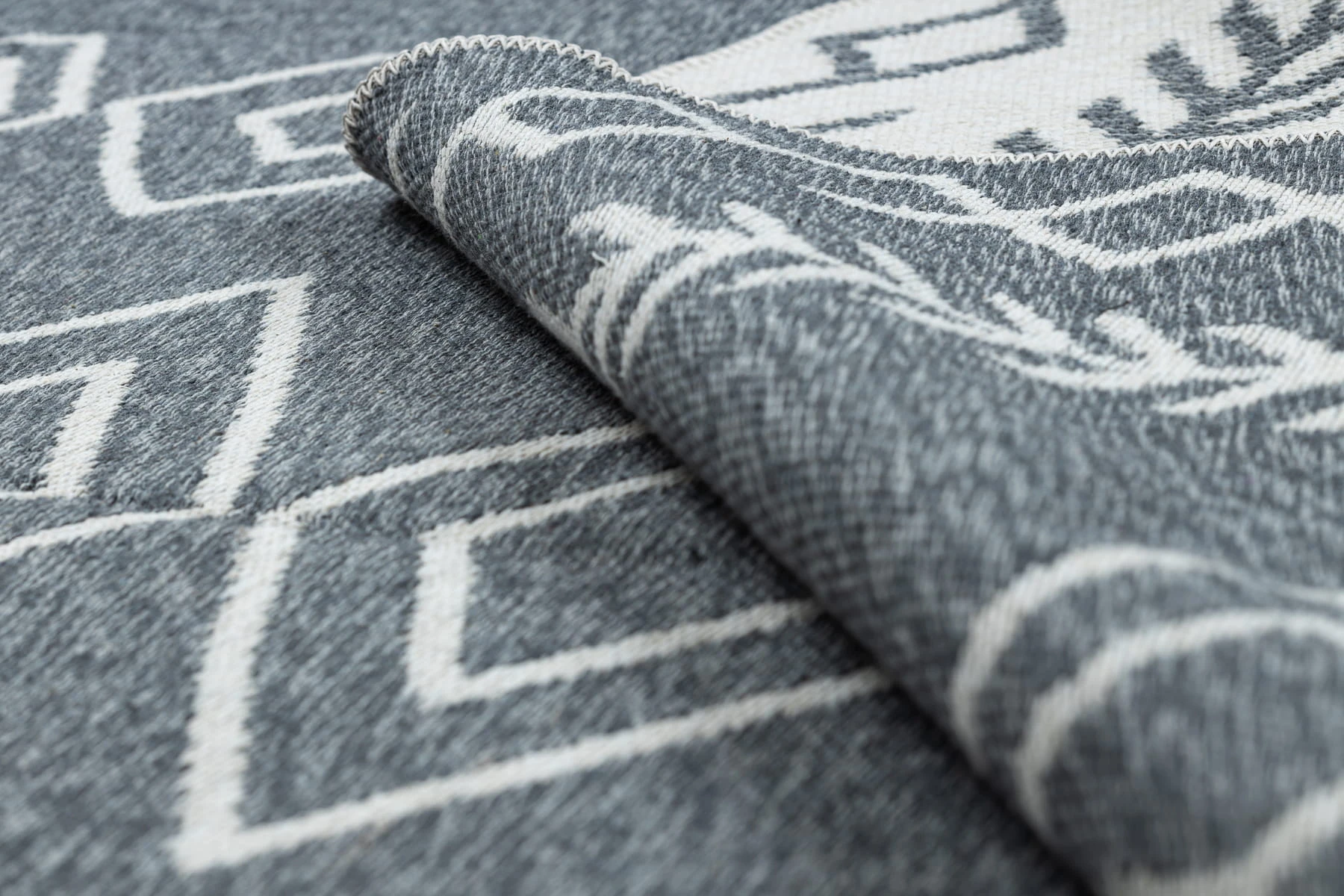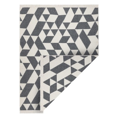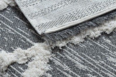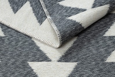 Szaro-kremowy dywan z geometrycznym wzorem, który doda pokojowi nowoczesny charakter w stylu boho.