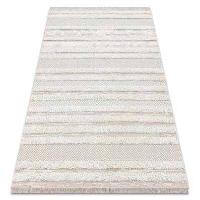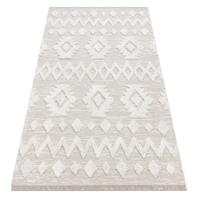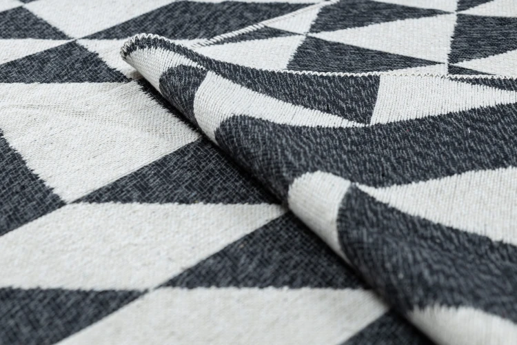 Kremowo-czarny dywan z geometrycznym wzorem, który idealnie wypełni długi korytarz, dodając mu nowoczesny charakter.