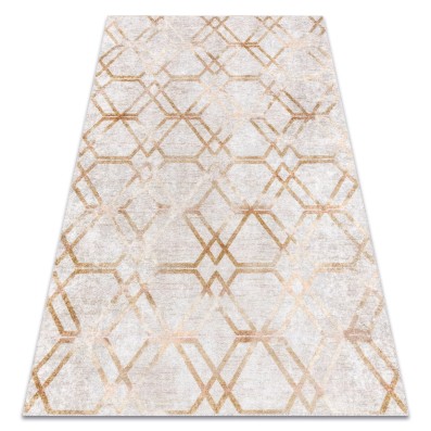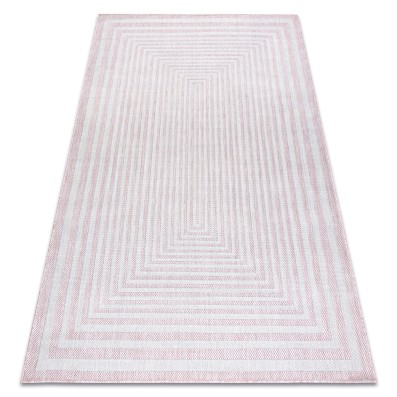 Różowo-kremowy dywan z geometrycznym wzorem, który wprowadzi delikatny akcent kolorystyczny do salonu lub pokoju.