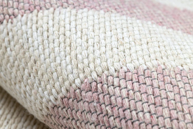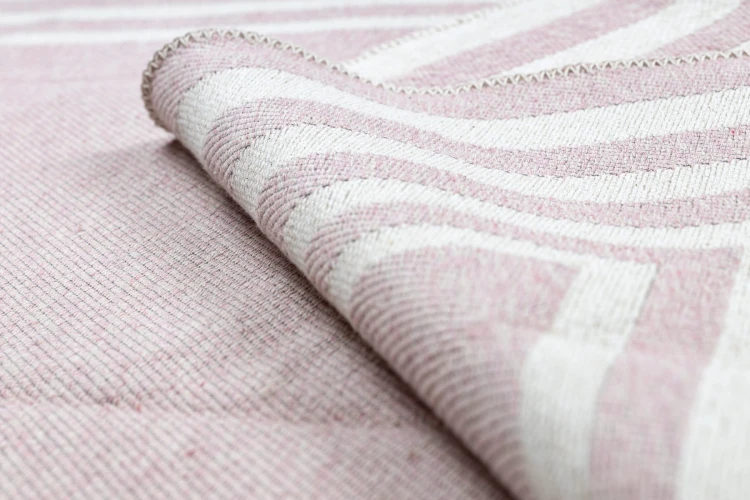 Różowo-kremowy dywan bawełniany z delikatną ramką, który doda salonu lub pokoju subtelnej elegancji.
