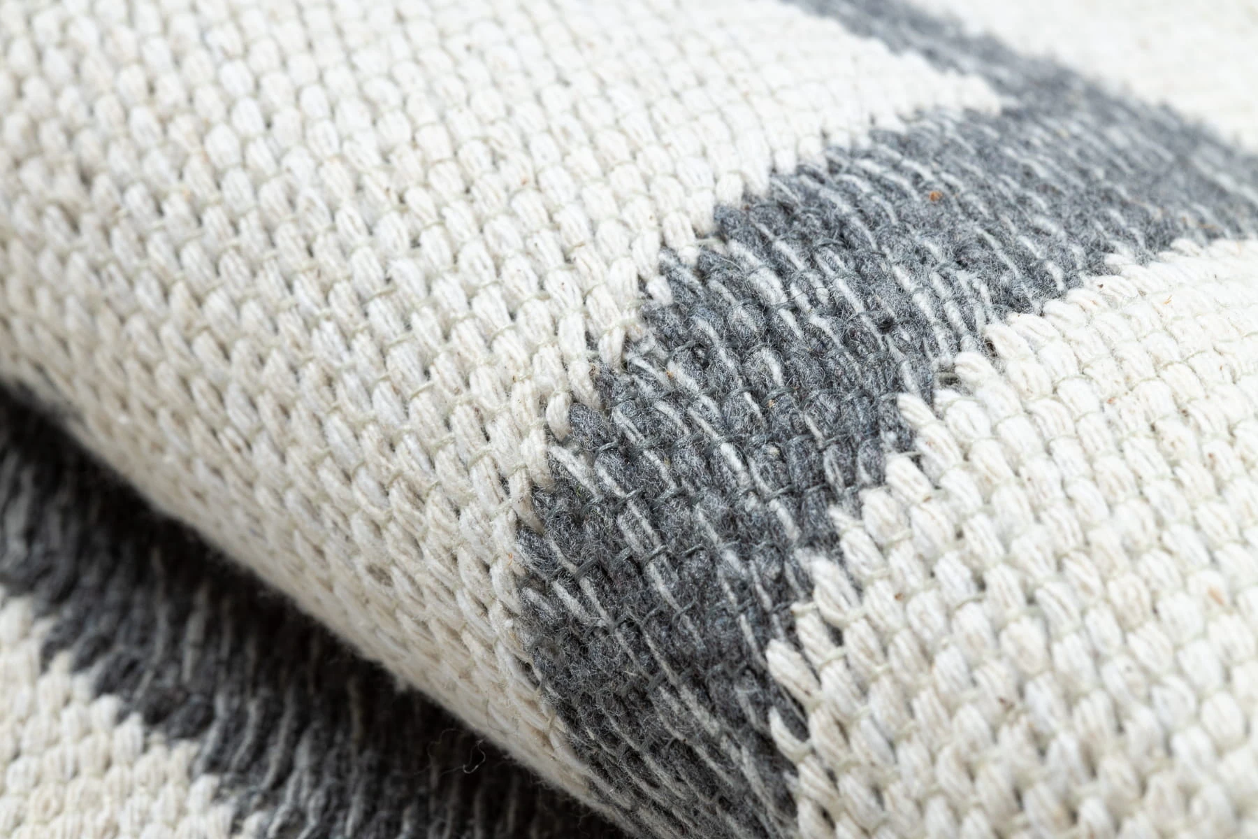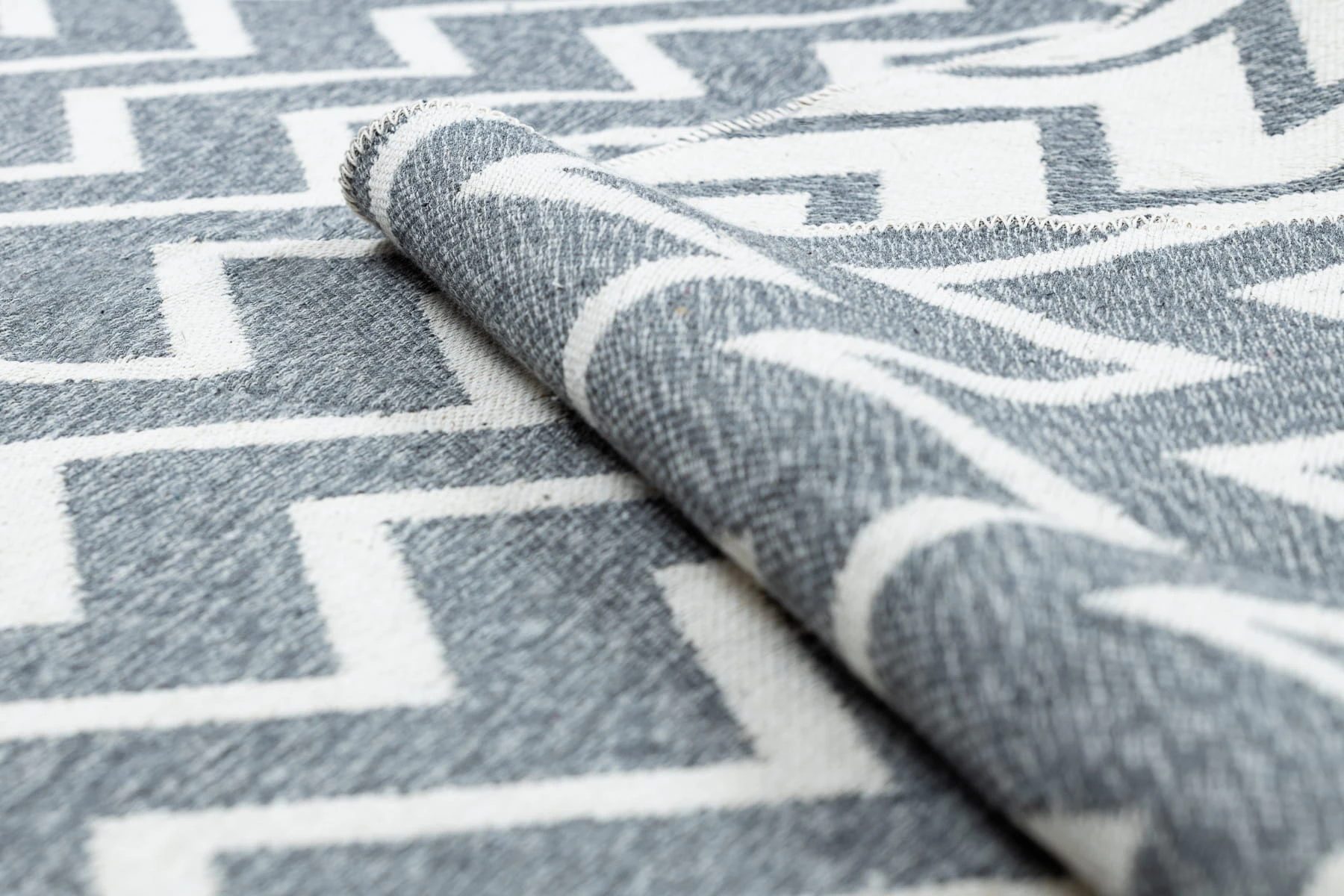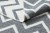 Szary dywan z kontrastowym wzorem zygzak, który doda nowoczesnego charakteru salonowi lub pokojowi.