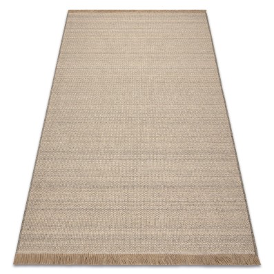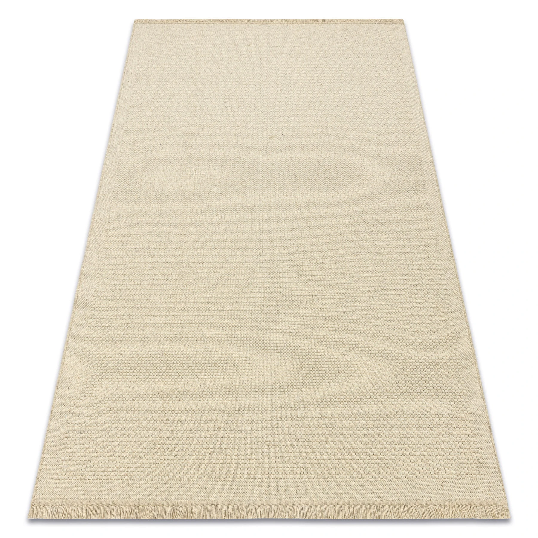 Beżowy dywan z abstrakcyjnym wzorem, który wprowadzi do salonu lub pokoju spokojną, nowoczesną elegancję.