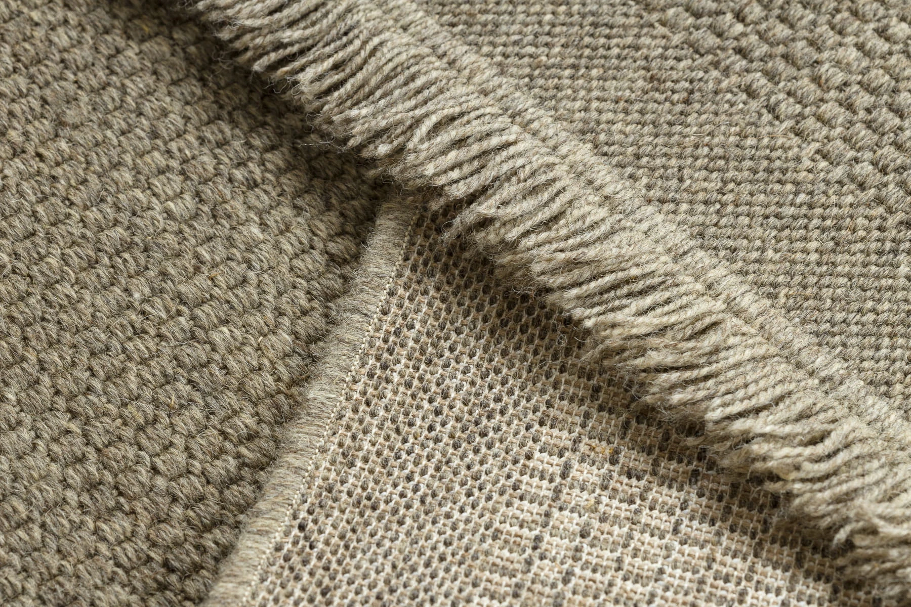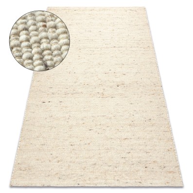 Jednokolorowy beżowy dywan z wełny, który stworzy w salonie spokojną bazę do aranżacji w naturalnych odcieniach.