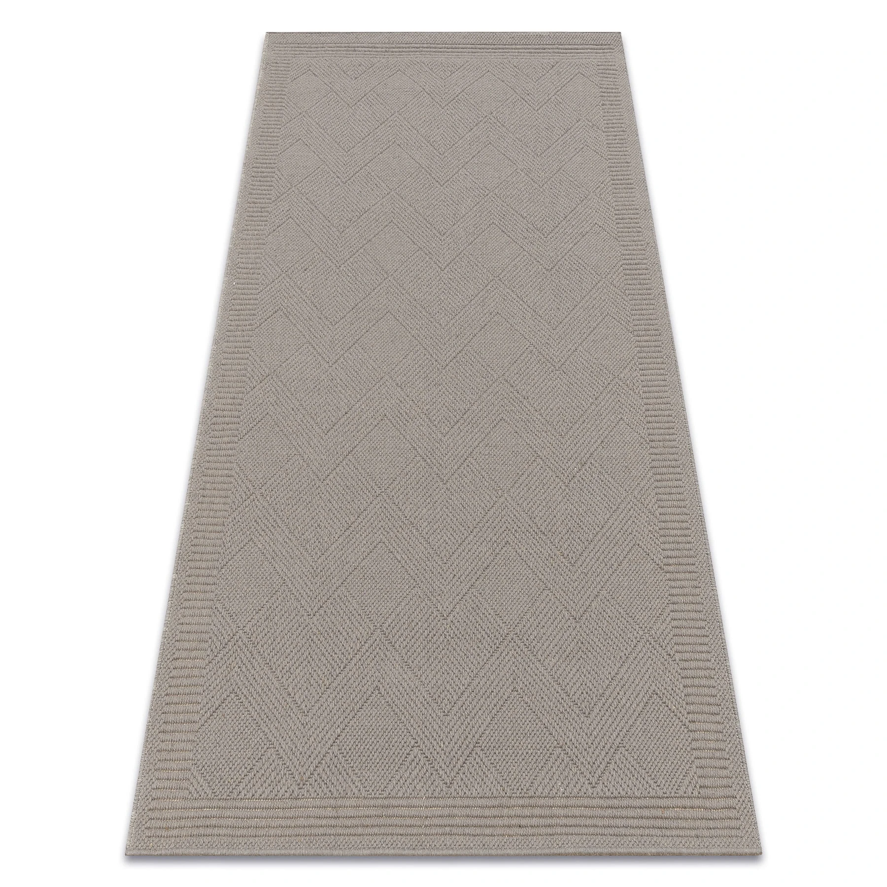 Beżowy dywan z wełny z abstrakcyjnym wzorem zygzaka, który wprowadzi do salonu ciepły, naturalny akcent w nowoczesnym stylu.