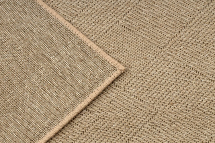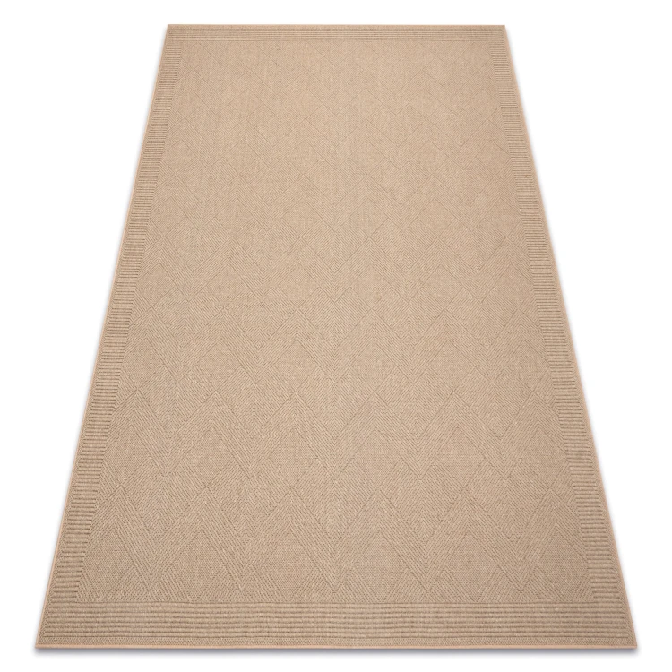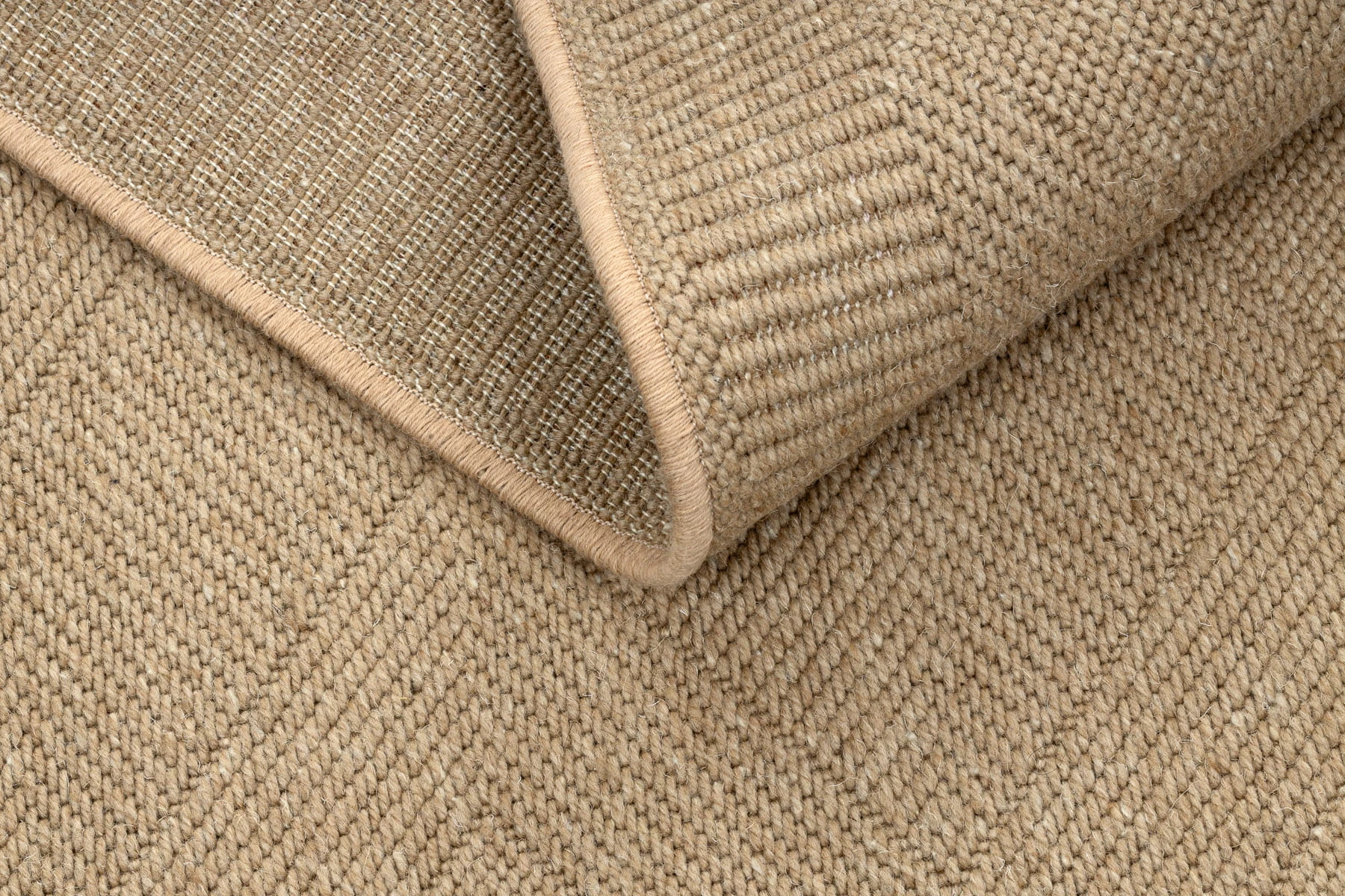 Beżowy dywan z wełny z abstrakcyjnym wzorem zygzaka, który doda salonowi nowoczesny charakter i ciepło naturalnych odcieni.