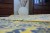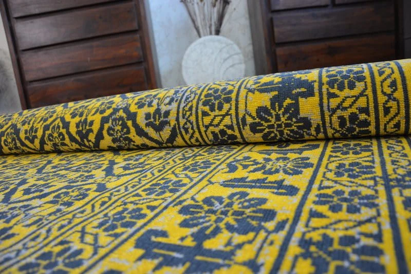 Żółty dywan z kwiatowym wzorem, który ożywi korytarz ciepłym, słonecznym akcentem.