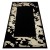 Czarny dywan z ozdobną złotą ramką, który nada korytarzowi elegancki charakter i podkreśli jego długość.