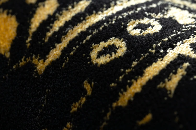 Czarno-złoty dywan z wzorem ramki, który doda korytarzowi elegancki charakter i stylowo podkreśli jego długość.