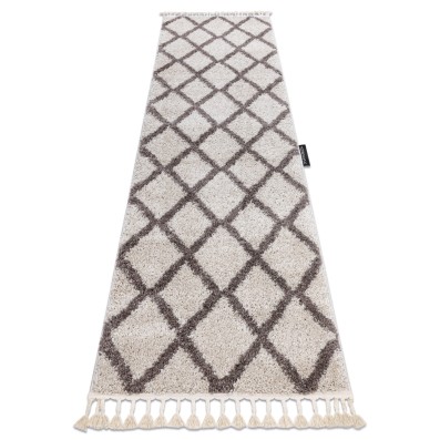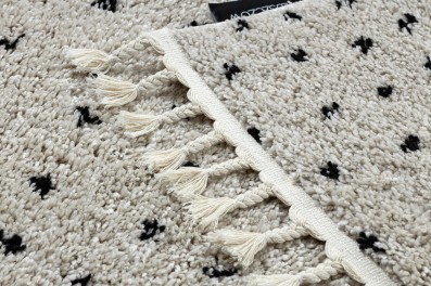 Kremowy dywan shaggy z runem 20 mm i geometrycznym wzorem w kropki, który idealnie wypełni korytarz, nadając mu przytulny charakter.