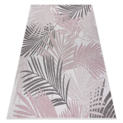 Sznurkowy dywan w kremowym kolorze z motywem liści palmy, odporny na warunki atmosferyczne, idealny na taras i balkon.