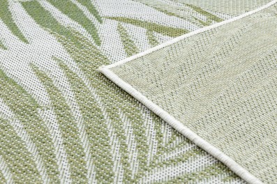 Kremowy dywan sznurkowy z zielonymi motywami roślinnymi, który wprowadzi do korytarza naturalny, egzotyczny klimat.