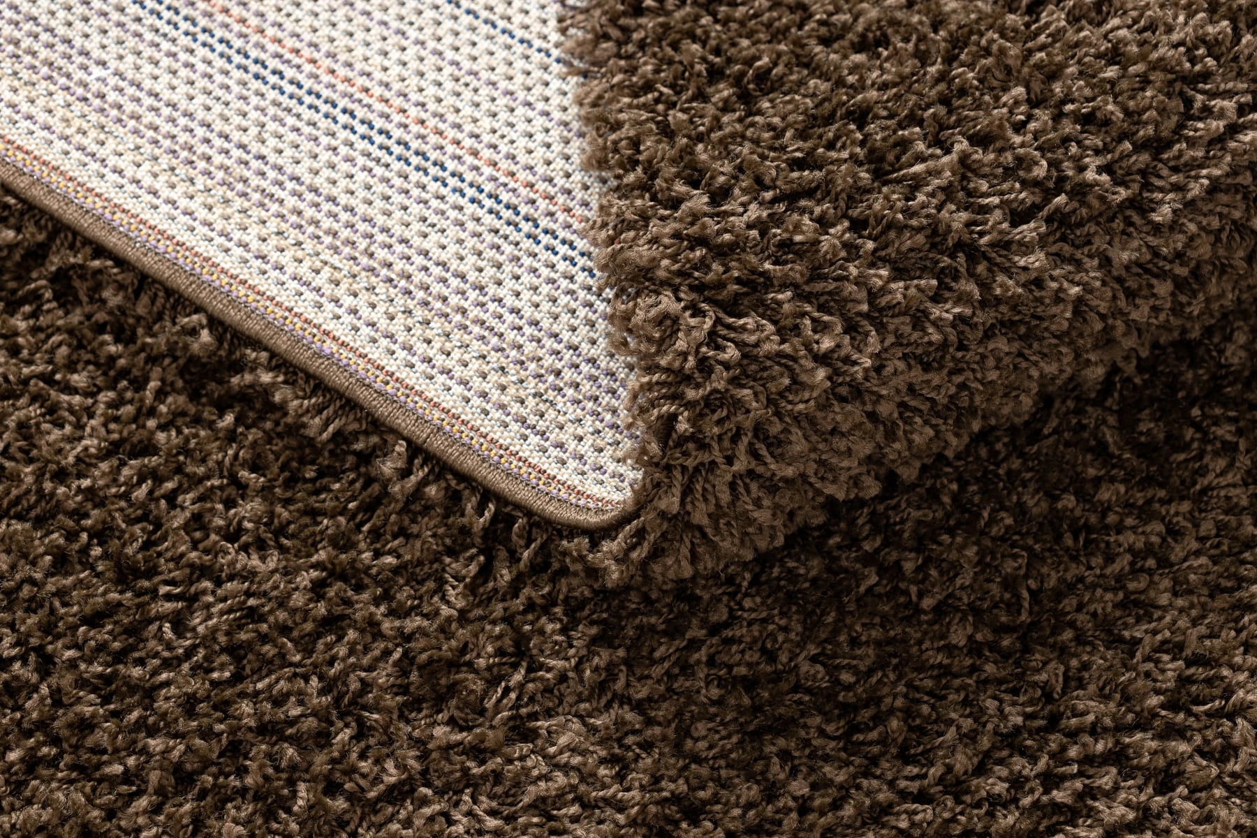 Brązowy dywan shaggy z runem 50 mm, który idealnie wypełni długi korytarz, tworząc przytulną atmosferę.
