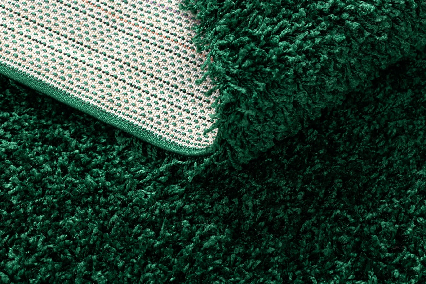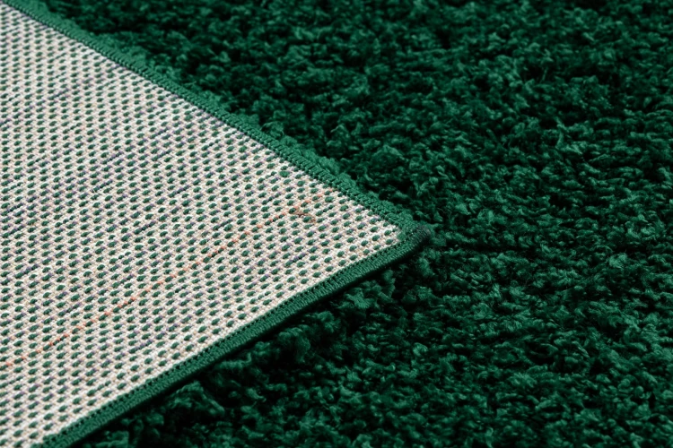 Butelkowozielony dywan shaggy z runem 50 mm, który wypełni korytarz naturalnym kolorem i stworzy przyjazną atmosferę.